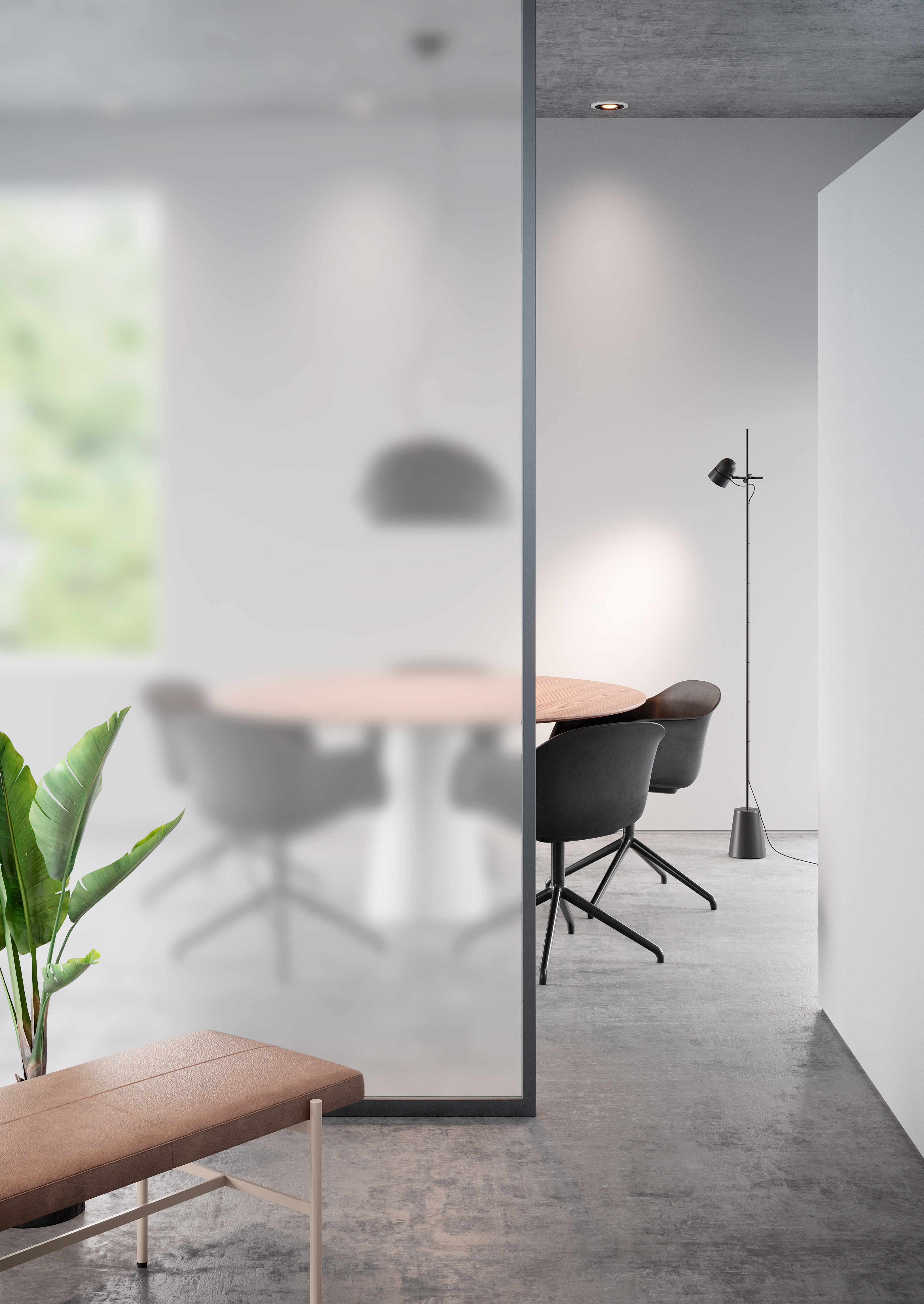 3M Fasara Interior Design Films combine Far Eastern design traditions with 21st Century technology to offer innovative new ways to manage space. When applied to glass, Fasara decorative films create a serene, etched-glass appearance, reminiscent of the rice paper partitions used in Japanese culture for centuries to divide interior spaces. At a fraction of the cost of etched-glass, Fasara films are perfectly suited for interior glass partitions or the inside surface of windows. Available in several textures which can be die-cut for highly customizable designs, Fasara films can be used to create a more private atmosphere or a more dynamic aesthetic look.